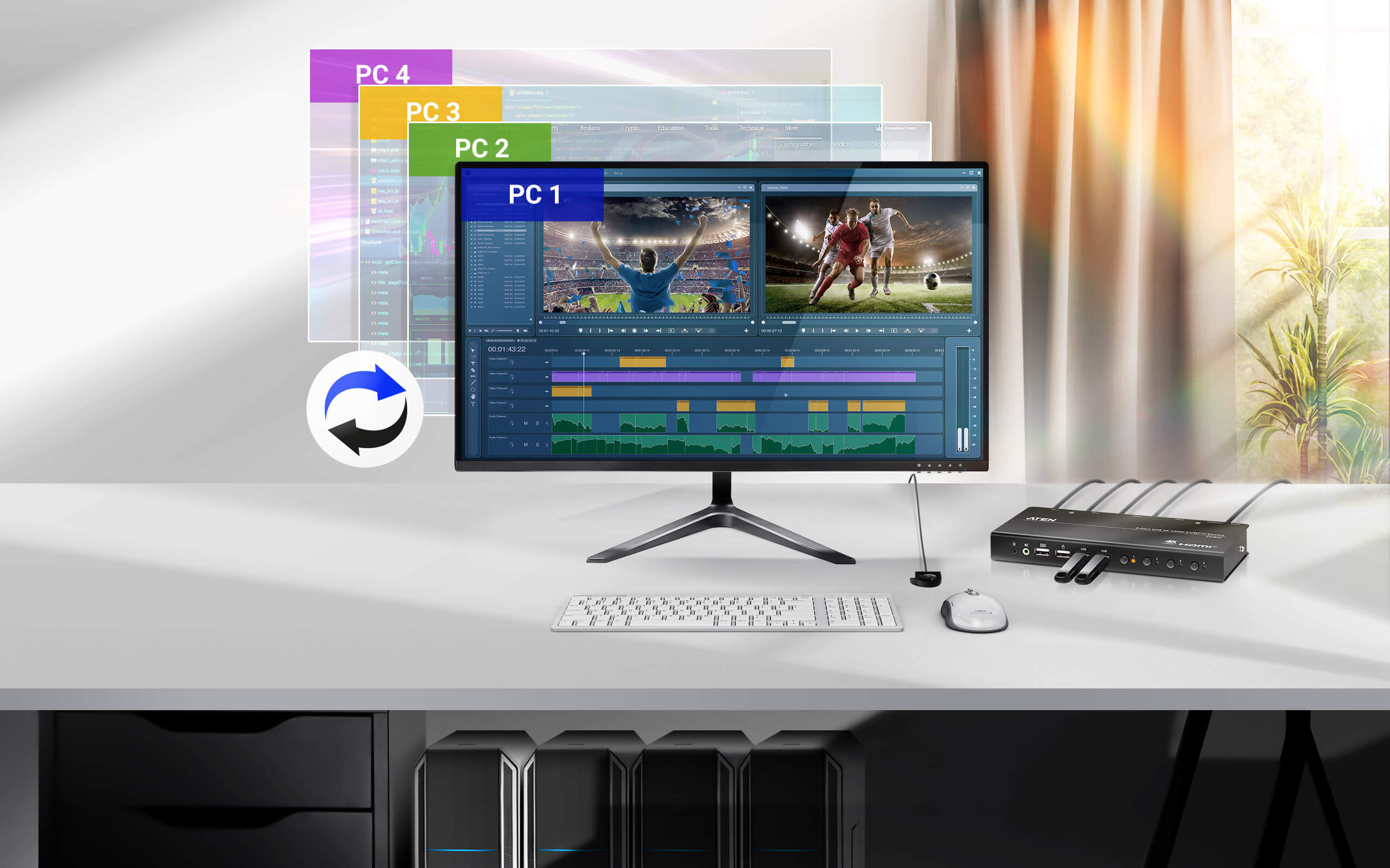 เทคโนโลยีพิเศษของ ATEN ช่วยให้ได้ความละเอียดที่เหมาะสมและคงการจัดวางหน้าต่างให้เหมือนเดิมในระหว่างการสลับพอร์ต ทำให้เวิร์กโฟลว์การทำงานแบบหลายระบบเป็นไปอย่างราบรื่น