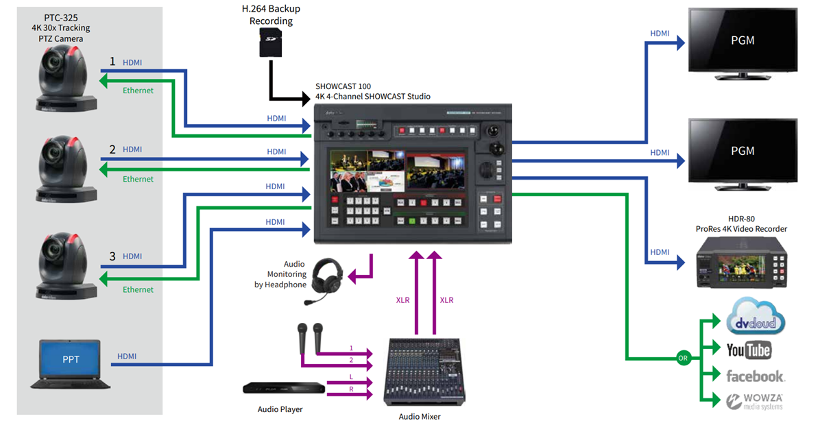ซีรีส์ PTC-325 ถูกออกแบบมาเพื่อตลาด A/V โดยเฉพาะ รองรับการสตรีมเอาต์พุตแบบคู่ (Dual Streaming) ช่วยให้คุณสตรีมไปยังแพลตฟอร์มอย่าง Facebook (RTMPS), YouTube และ dvCloud ได้อย่างง่ายดาย นอกจากนี้ยังรองรับมาตรฐาน ONVIF Profile S เพื่อให้มั่นใจว่าสามารถใช้งานร่วมกับอุปกรณ์ในระบบเครือข่ายวิดีโอที่หลากหลายได้อย่างไร้รอยต่อ