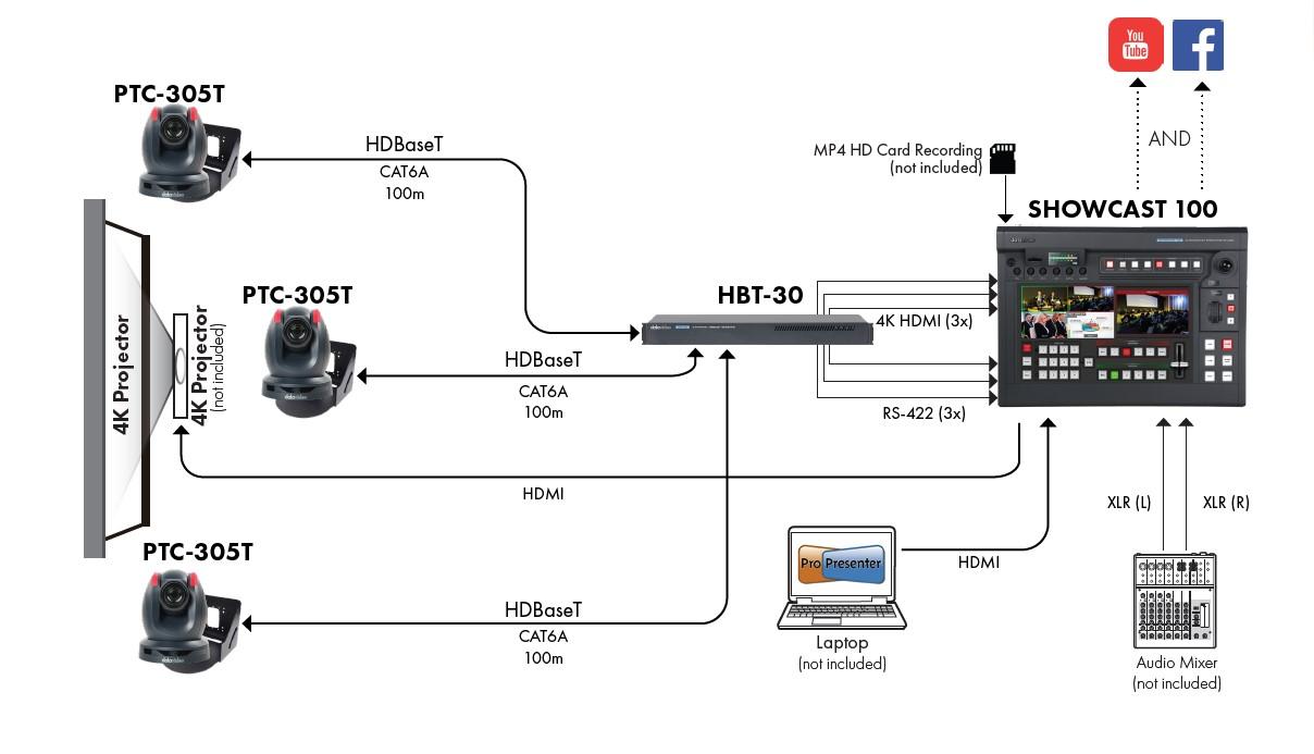 HDBaseT ช่วยให้คุณสามารถส่งได้ทั้งพลังงานไฟเลี้ยง, สัญญาณวิดีโอความละเอียดสูง, สัญญาณควบคุม และไฟสถานะ (Tally) ผ่านสายอีเธอร์เน็ต (สายแลน) เพียงเส้นเดียว