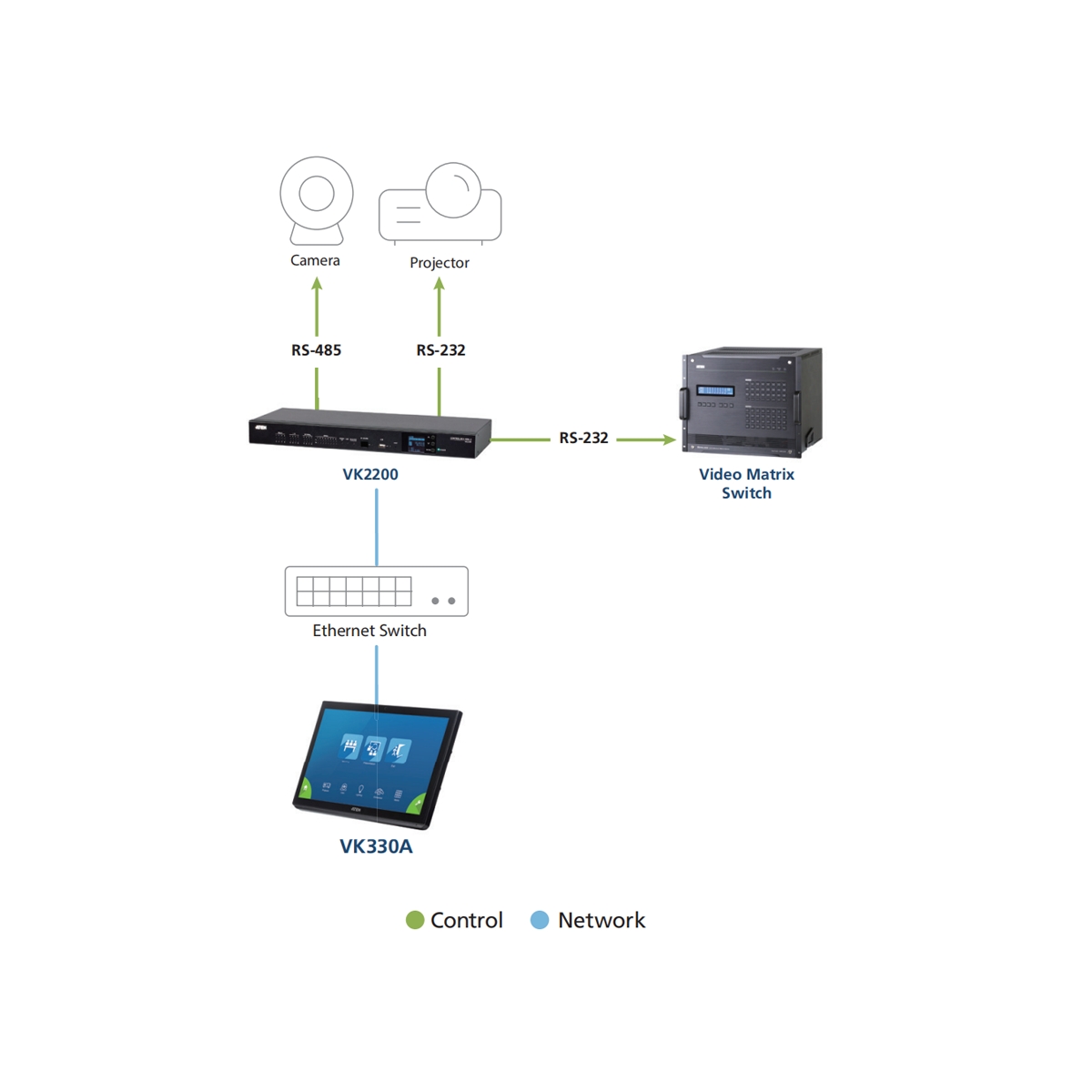 ภายในตัวเครื่องใช้หน่วยประมวลผล (CPU) ประสิทธิภาพสูง และมีแอป ATEN Control System ติดตั้งมาให้ล่วงหน้า รองรับการทำงานร่วมกับ ระบบควบคุมห้องประชุม (Control System) ผ่านเครือข่าย Ethernet ซึ่งประกอบด้วย Controller, Expansion Box และ Configurator Software ช่วยให้สามารถเชื่อมต่อและควบคุมอุปกรณ์ทั้งหมดได้จากศูนย์กลาง ไม่ว่าจะเป็นการควบคุมหลายห้องพร้อมกัน หรือสั่งงานผ่านอุปกรณ์พกพา ก็ทำได้อย่างสะดวก เหมาะกับองค์กรที่ต้องการ ระบบควบคุมแบบรวมศูนย์ (Centralized Control System)