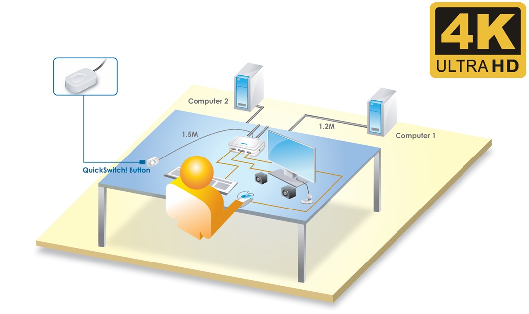 | PC selection | QuickSwitch button/ Hotkeys/ Switching Software |