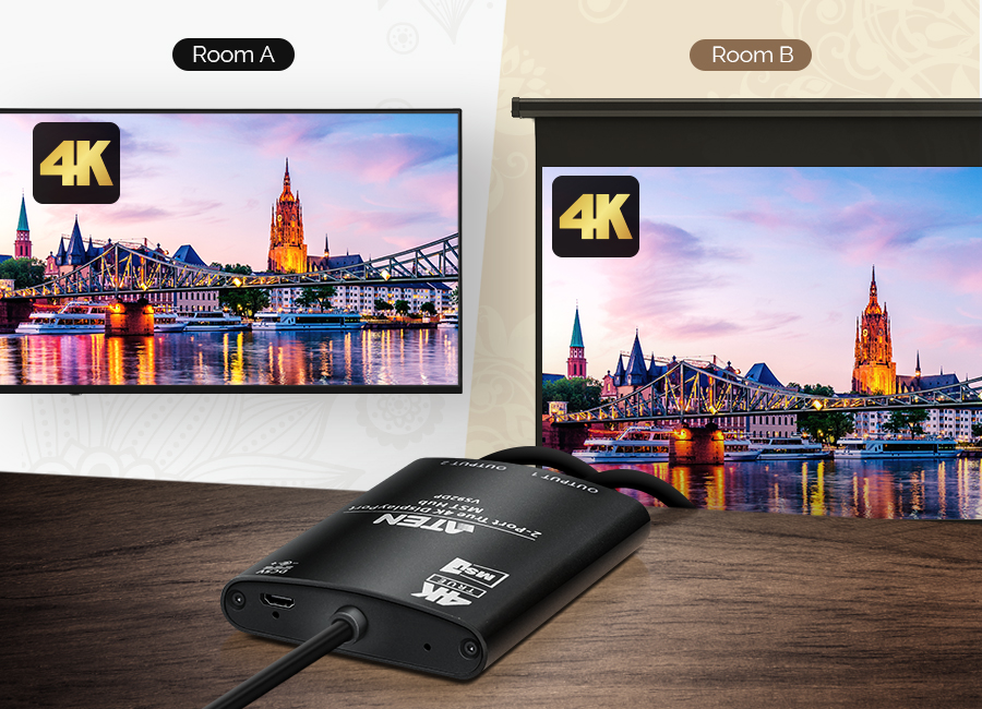 ด้วยเทคโนโลยีขั้นสูงของ VS92DP คุณสามารถกระจายเนื้อหาความละเอียดระดับ 4K แท้ ไปยังสองหน้าจอได้พร้อมกันอย่างไร้ที่ติ เพื่อประสบการณ์การรับชมที่ต่อเนื่องและคมชัด