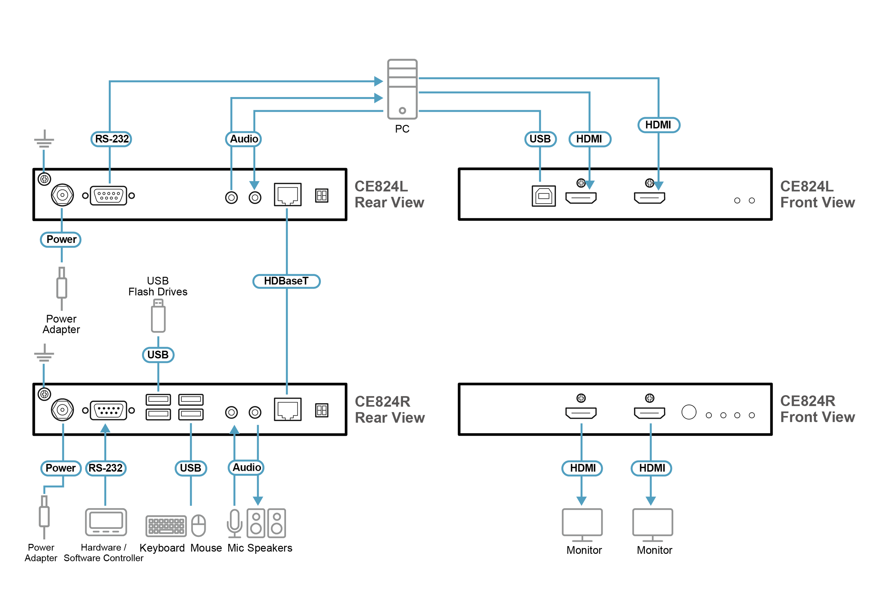 เมื่อเปิดโหมด Long Reach Mode อุปกรณ์ CE824 สามารถขยายสัญญาณ HDMI 1080p พร้อมสัญญาณอื่น ๆ ได้ไกลถึง 150 เมตร* ความง่ายในการติดตั้งสายเคเบิลและรองรับการติดตั้งแบบแร็คช่วยให้การตั้งค่าระบบมีประสิทธิภาพมากขึ้น CE824 จึงเป็นโซลูชันที่เหมาะสำหรับงานที่ต้องการการขยายสัญญาณหลายประเภทคุณภาพสูงพร้อมการควบคุม KVM ระยะไกล เช่น ศูนย์ควบคุม, ภาคการธนาคารและการเงิน, คลังสินค้าอุตสาหกรรม และเวิร์กสเตชันแบบขยาย