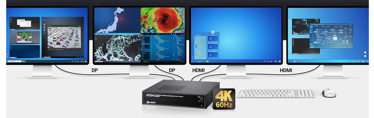 สัมผัสประสบการณ์ภาพคมชัดระดับ 4K@60 DCI บนหน้าจอ 4 จอ (HDMI 2 ช่อง และ DisplayPort 2 ช่อง) ด้วยอุปกรณ์ KE8980MR ที่ถูกออกแบบมาเพื่อการตรวจสอบที่ต้องการความแม่นยำสูง และสร้างมาเพื่อเพิ่มประสิทธิภาพการทำงานในห้องควบคุมให้สามารถตัดสินใจได้อย่างแม่นยำและรวดเร็ว