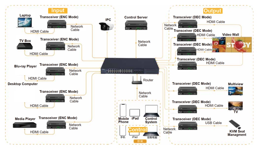 ควบคุมและจัดการ HDMI Over IP รุ่น HK200 มีพอร์ตเครือข่าย 1G สองพอร์ตเพื่อแยกการทำงานระหว่างเครือข่ายควบคุมกับเครือข่ายวิดีโอออกจากกัน และสามารถควบคุมได้หลายวิธี เช่น ผ่านเว็บ, RS-232 และ IR รองรับการจ่ายไฟผ่าน PoE ทำให้ติดตั้งได้สะดวก