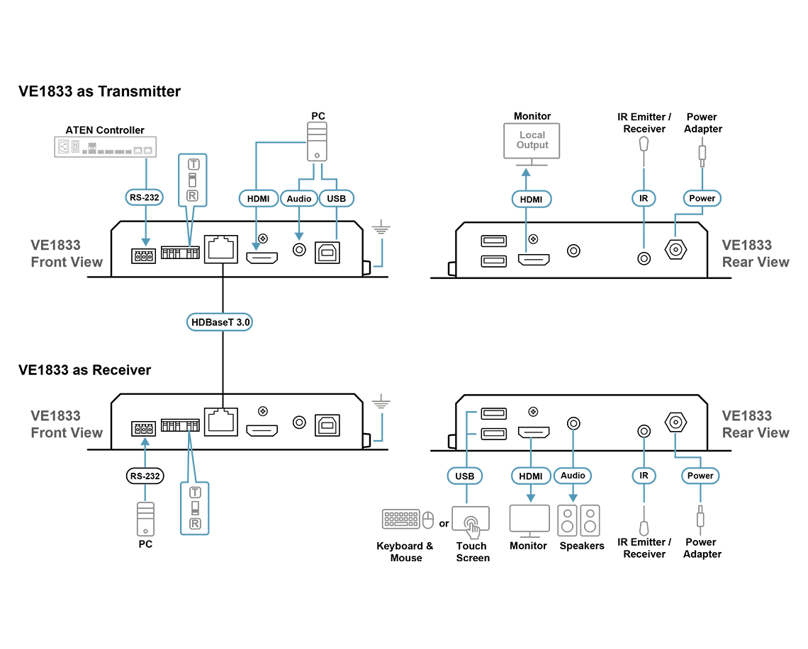 | Max. Resolutions / Distance | Up to 4K x 2K @ 60Hz (4:4:4) @40m (HDBaseT3 Certified Cat 6a U/FTP cable / ATEN’s tailor-made HDBaseT cable) |