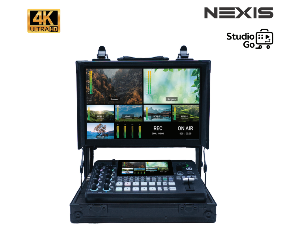 StudioGo – Portable Live Streaming Switcher & Mobile Video Production พร้อมจอในตัว แบบพกพา ออกแบบมาให้เป็นระบบไลฟ์สดครบชุด ใส่ในกระเป๋าหิ้ว พร้อมจอ LCD 14 นิ้ว Full HD ดูภาพได้ทันทีโดยไม่ต้องต่อจอแยก เหมาะสำหรับงาน Live Streaming, ถ่ายทอดสดงานอีเวนต์, งานสัมมนา, งานแสดงสินค้า, งานอบรม หรือ งาน Production ภายในองค์กรที่ต้องการระบบไลฟ์สดหลายกล้อง แบบง่ายและครบจบในเครื่องเดียว รองรับ 5 Input (4 HDMI/3G-SDI + USB/UVC หรือ NDI | HX2) คุณสามารถ สลับภาพหลายกล้อง, สตรีมสด, บันทึกวิดีโอ, และ ผสมเสียง โดยไม่ต้องใช้อุปกรณ์หลายชิ้น ทำให้ StudioGo เป็นตัวเลือกที่ดีสำหรับคนที่ต้องการ สตูดิโอพกพา ไม่ว่าจะเป็นผู้เริ่มต้นใช้งาน หรือกลุ่มคนจัดงานระดับมืออาชีพ ที่ไม่อยากพะวงกับความยุ่งยากด้านเทคนิค