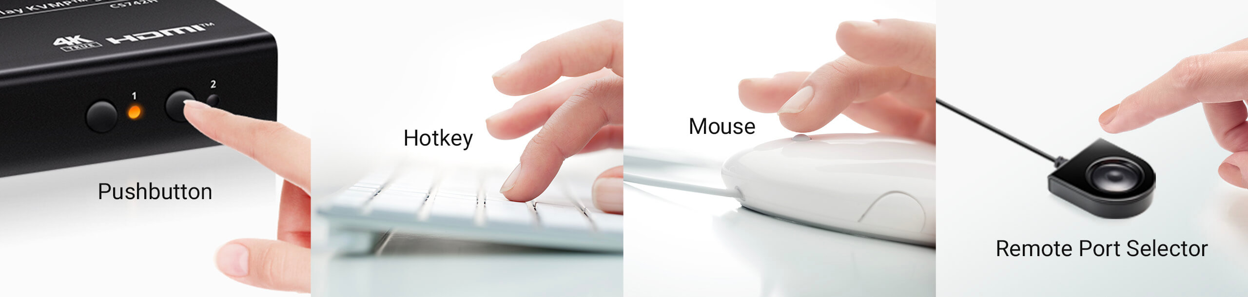 การสลับพอร์ตทำได้อย่างรวดเร็วและยืดหยุ่นผ่าน ปุ่มกด, ปุ่มลัด (hotkeys), เมาส์ หรือ ตัวเลือกพอร์ตระยะไกล—ไม่ว่าจะวิธีใดก็ตามที่เหมาะสมกับขั้นตอนการทำงานของคุณที่สุด