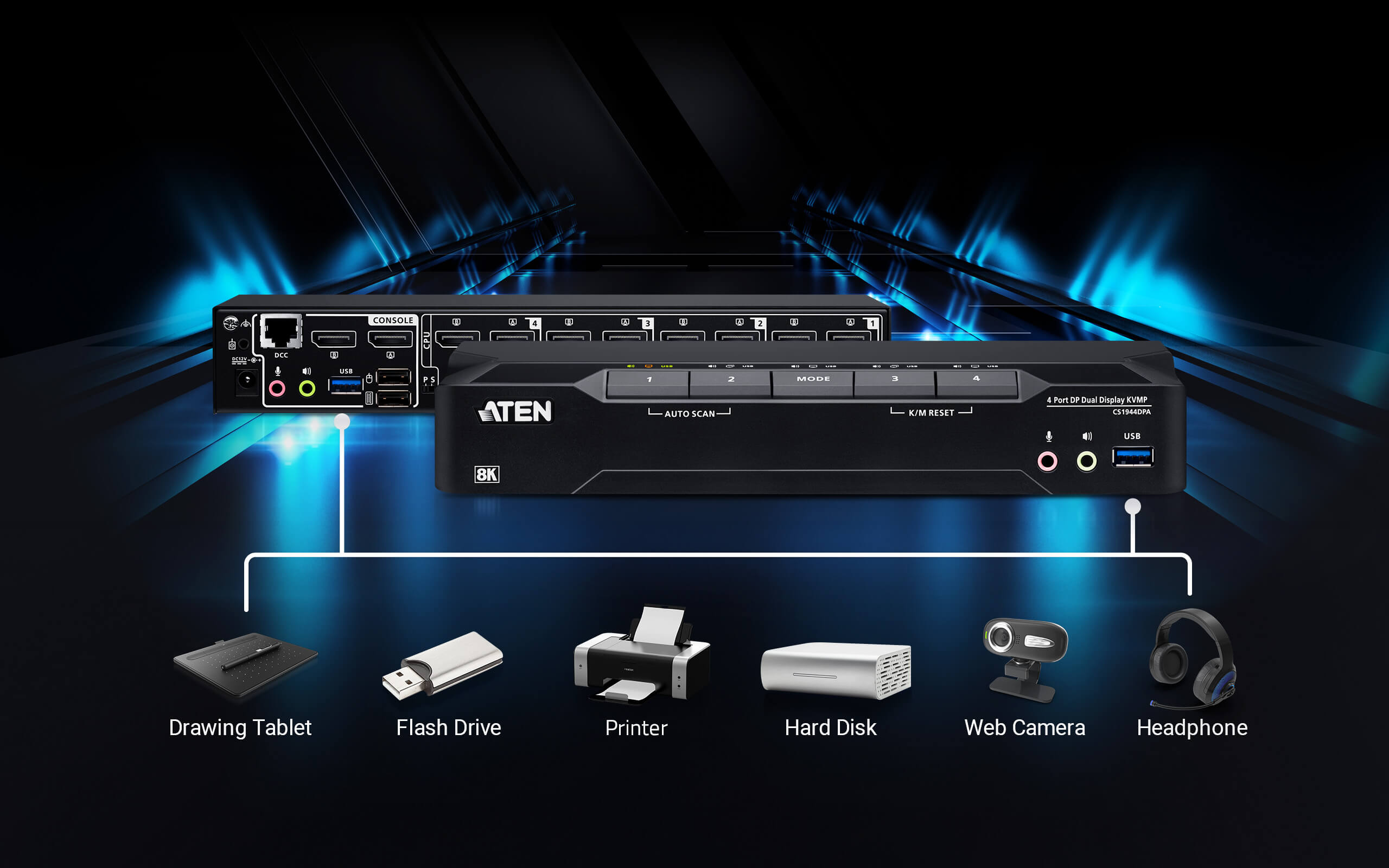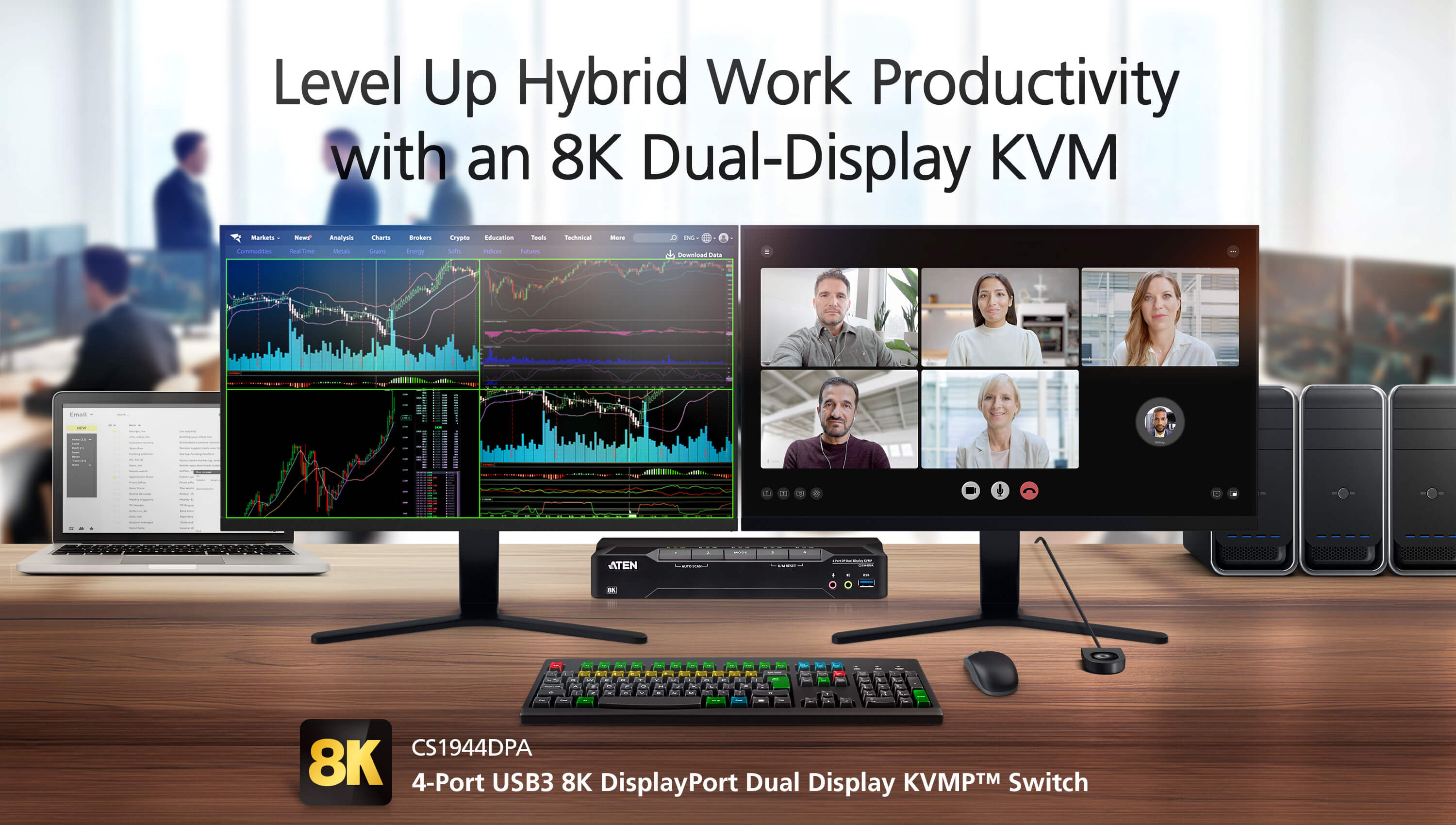 CS1944DPA คือตัวช่วยยกระดับประสิทธิภาพการทำงาน (Productivity Booster) สำหรับผู้ที่ต้องทำงานหลายอย่างพร้อมกัน (Multitasking) บนโต๊ะทำงานที่เชื่อมต่อคอมพิวเตอร์สเปกสูงถึง 4 เครื่อง และหน้าจอคู่ ภายใต้การจัดวางที่สะดวกสบายและเป็นระเบียบเรียบร้อย และด้วยความยืดหยุ่นที่สามารถขยายระบบไปได้สูงสุดถึง 4 หน้าจอ จึงช่วยปลดล็อกความคิดสร้างสรรค์ให้สามารถจัดการทุกกระบวนการทำงานแบบไฮบริด (Hybrid Workflow) ได้อย่างไร้ขีดจำกัด