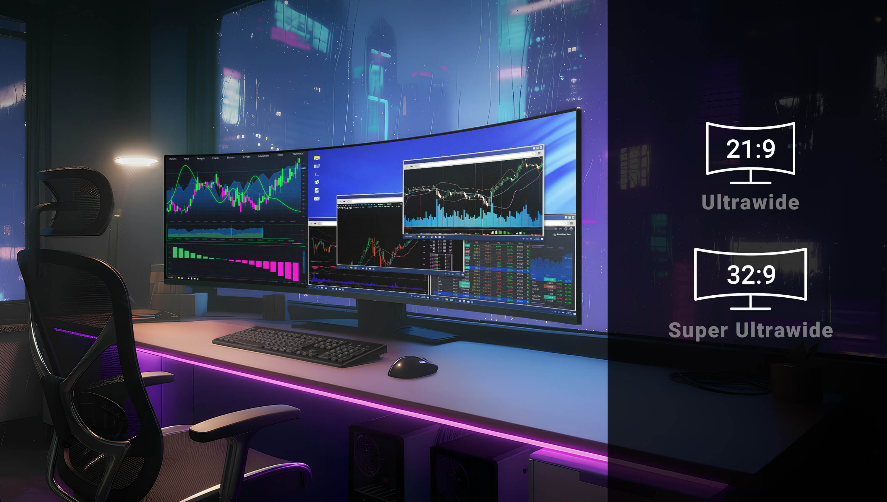 รองรับจอภาพมุมกว้างพิเศษ: ใช้งานได้กับสัดส่วนหน้าจอ 21:9 และ 32:9 เพื่อมุมมองที่กว้างขวาง