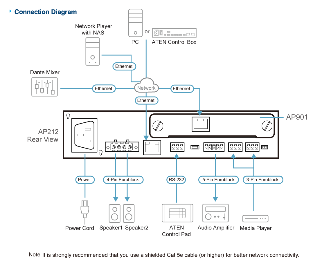 ออกแบบมาโดยเฉพาะสำหรับใช้งานร่วมกับเพาเวอร์แอมป์ซีรีส์ AP DSP ของ ATEN