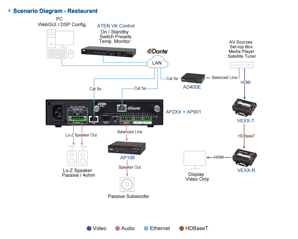 ช่วยให้เพาเวอร์แอมป์ของ ATEN AP series สามารถรับเสียงดิจิทัลคุณภาพสูงแบบหน่วงต่ำ 2 ช่องทางจาก Dante AoIP ได้