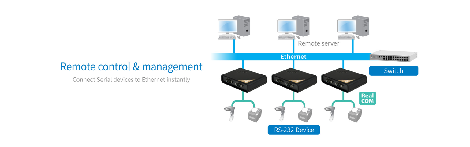 หลายองค์กรยังมีอุปกรณ์ที่ใช้พอร์ต RS-232 Serial เช่น PLC รุ่นเก่า, เครื่อง CNC, เครื่องสแกนบาร์โค้ด, เครื่องอ่านบัตร, เครื่องพิมพ์อุตสาหกรรม, เครื่องชั่งน้ำหนักดิจิทัล แต่ญหาคือ RS-232 ต่อสายได้ระยะสั้น (ประมาณ 15 เมตร) และไม่สามารถเชื่อมต่อเข้าระบบ LAN หรือ Internet ได้โดยตรง Serial to Ethernet Converter จึงเป็นอุปกรณ์ที่ช่วยแก้ปัญหาดังนี้