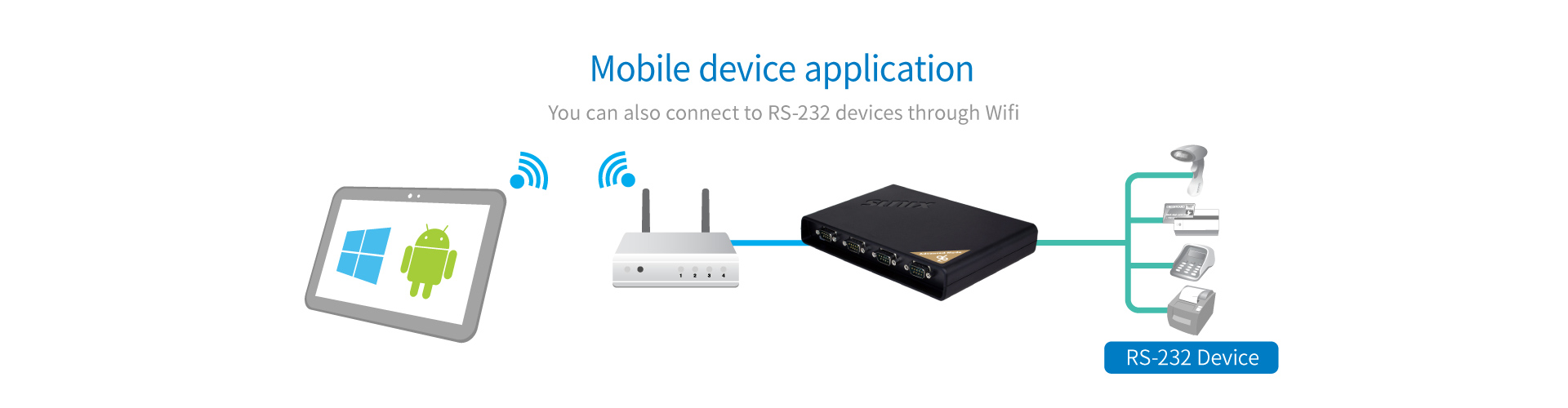 DPAS04H00 allows users to expand four RS-232 ports over Ethernet connection, and it works on any windows based desktop, thin client, laptop, All-in-one, and tablet PC computers.