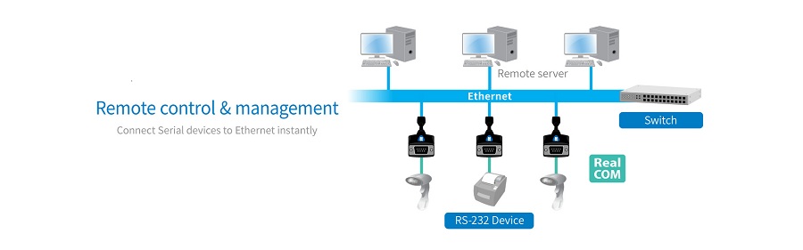 DPAS01DZ0 allows users to expand 1 RS-232 port over Ethernet connection, and it works on any windows based desktop, thin client, laptop, All-in-one, and tablet PC computers.